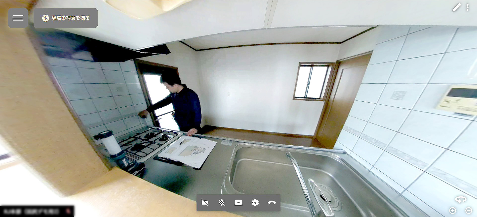 調査を行う現場から本社へ360°映像をライブ配信。映像の画角を自由に変えて部屋全体を見渡したり、細部をズームして確認するなど、現場に行かなくても本社から遠隔で、物件詳細を把握できる体制を構築されています。現場の施工管理担当者と、本社の経験豊富な工事長、そして図面やリノベーションプランを作成する設計担当者が、物理的な距離を超えてリアルタイムに連携。効率的かつ高精度な現場調査を実現されています。